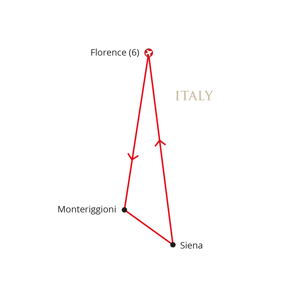 An excursion to Monteriggioni and Siena sets Florence within its broader Tuscan context, while two performances in the city’s historic theatres and the pleasures of seasonal Tuscan cuisine complete the experience.